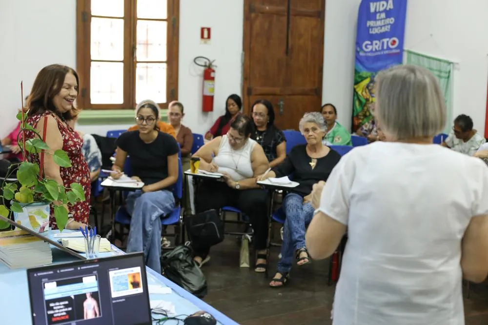 emocional de quem atua diretamente no acolhimento. Ela explicou que o primeiro módulo