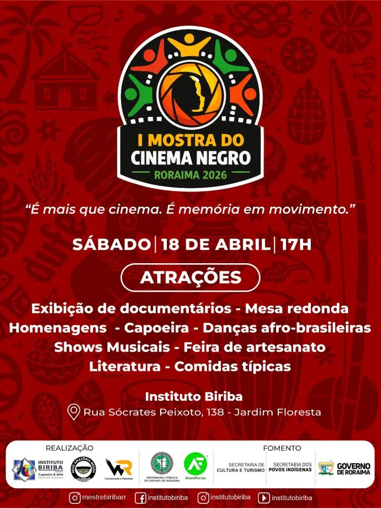 A Secult (Secretaria de Cultura e Turismo de Roraima), em parceria com a DPE-RR (Defensoria Pública do Estado de Roraima), é uma das principais fomentadoras da I Mostra do Cinema Negro Roraima 2026. O evento marca a estreia oficial do cinema negro no calendário cultural do estado e serve como prévia do FestCine Saberes Amazônicos, que será realizado em junho.