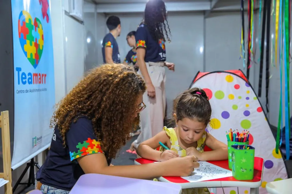A iniciativa também contempla crianças típicas, promovendo interação e desenvolvimento em um ambiente adaptado. Segundo a assistente terapêutica do Teamarr, Mainne Lima, o espaço foi pensado para atender uma demanda ainda pouco contemplada em eventos abertos.